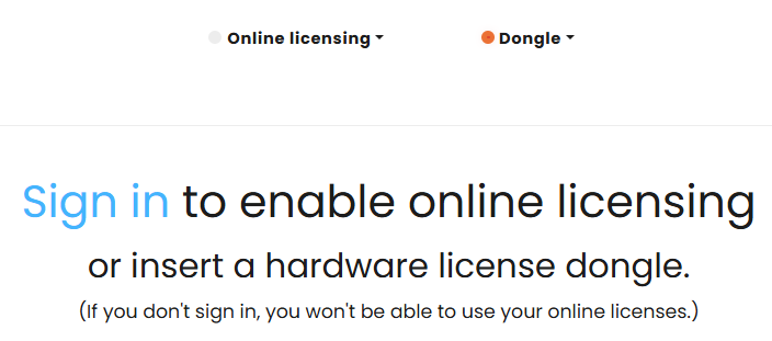 1. Przejdź na http://localhost:30304/ lub http://127.0.0.1:30304/ kliknij w Online Licensing, a następnie Sing Out