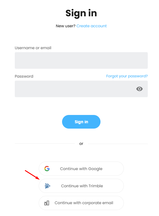 4. Do logowania użyj opcji Continue with Trimble i zaloguj się na konto do którego przypisana jest licencja SketchUp Studio