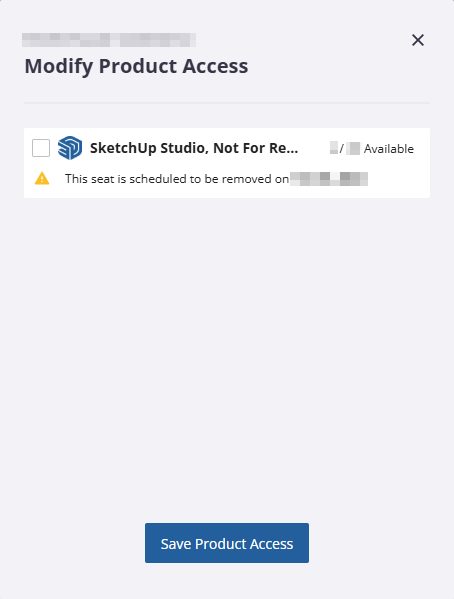 4. Odepnij subskrypcję SketchUp Studio klikając w checkbox, a następnie Save Product Access